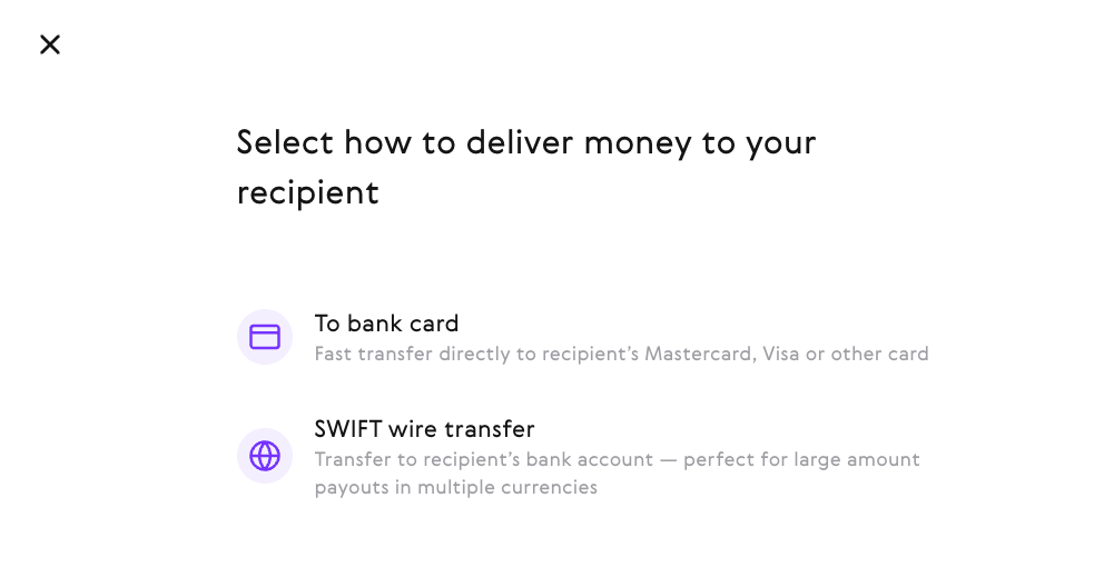 Opt for the “SWIFT wire transfer” method.